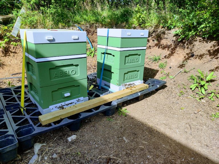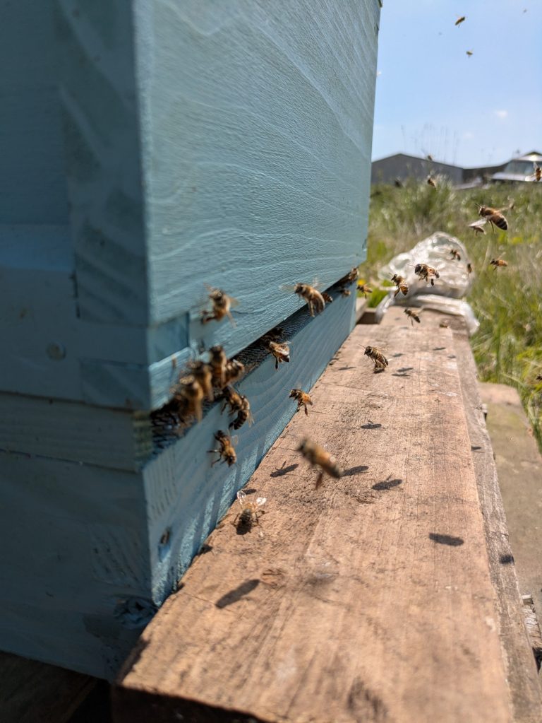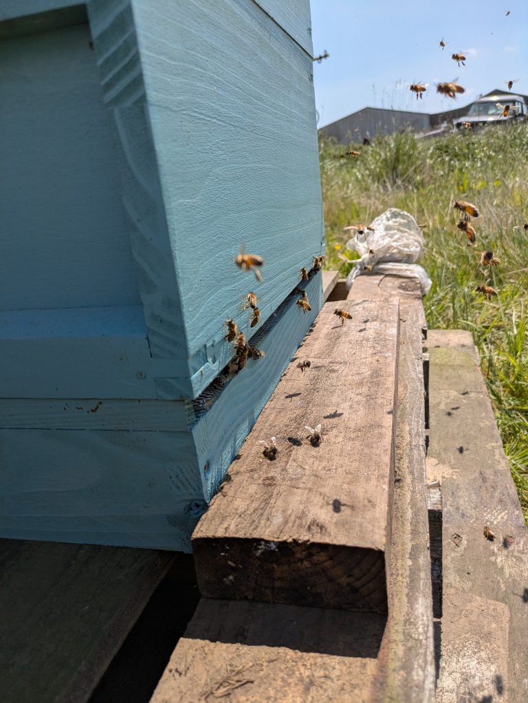 So after getting the bees settled in we now check to see how they have faired in the new hives. One of the hives is growing really strong and fats the other is not doing so well.