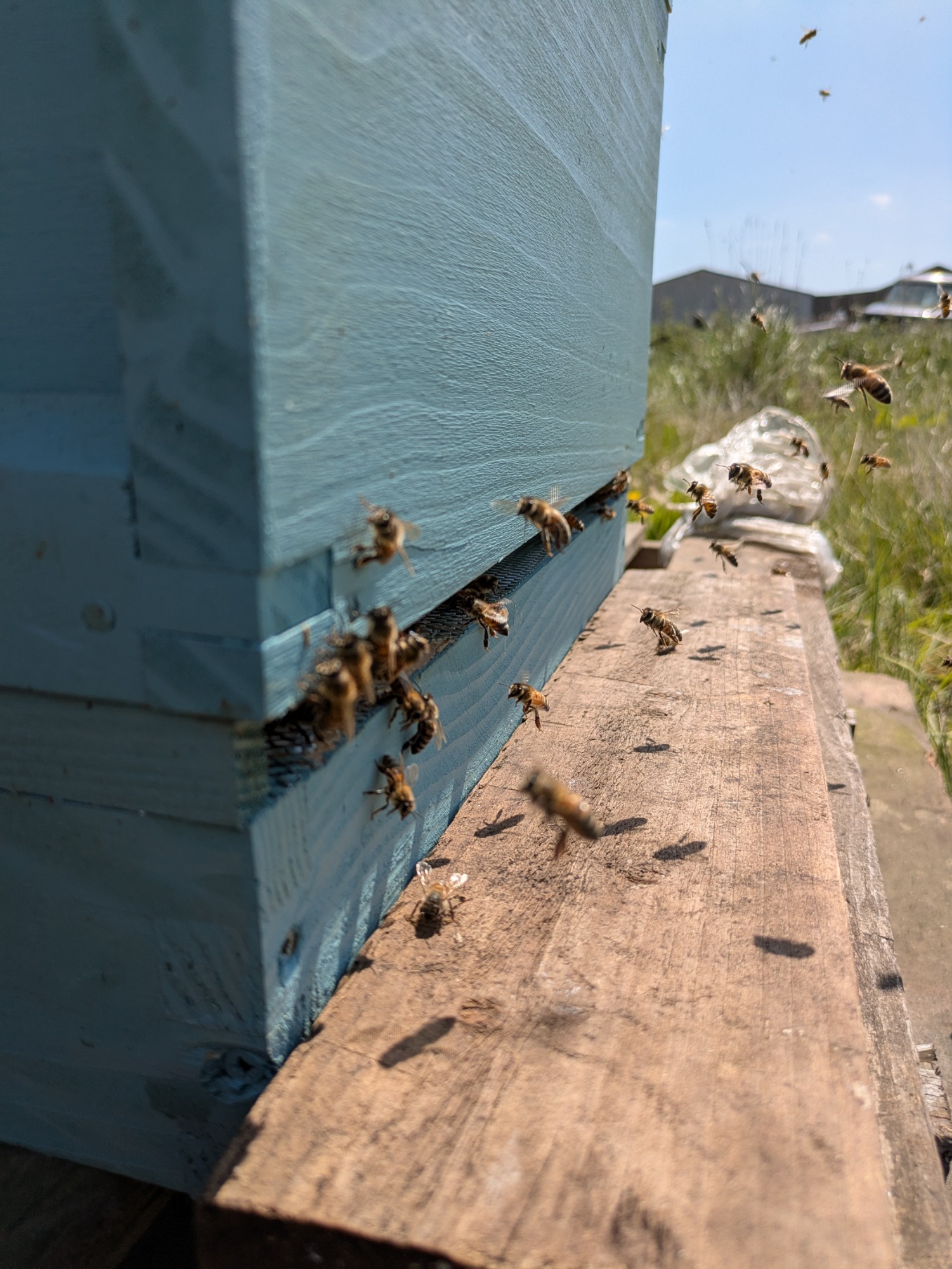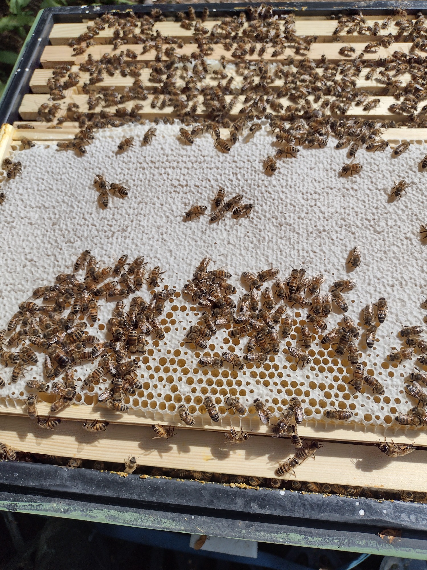 So after getting the bees settled in we now check to see how they have faired in the new hives. One of the hives is growing really strong and fats the other is not doing so well.